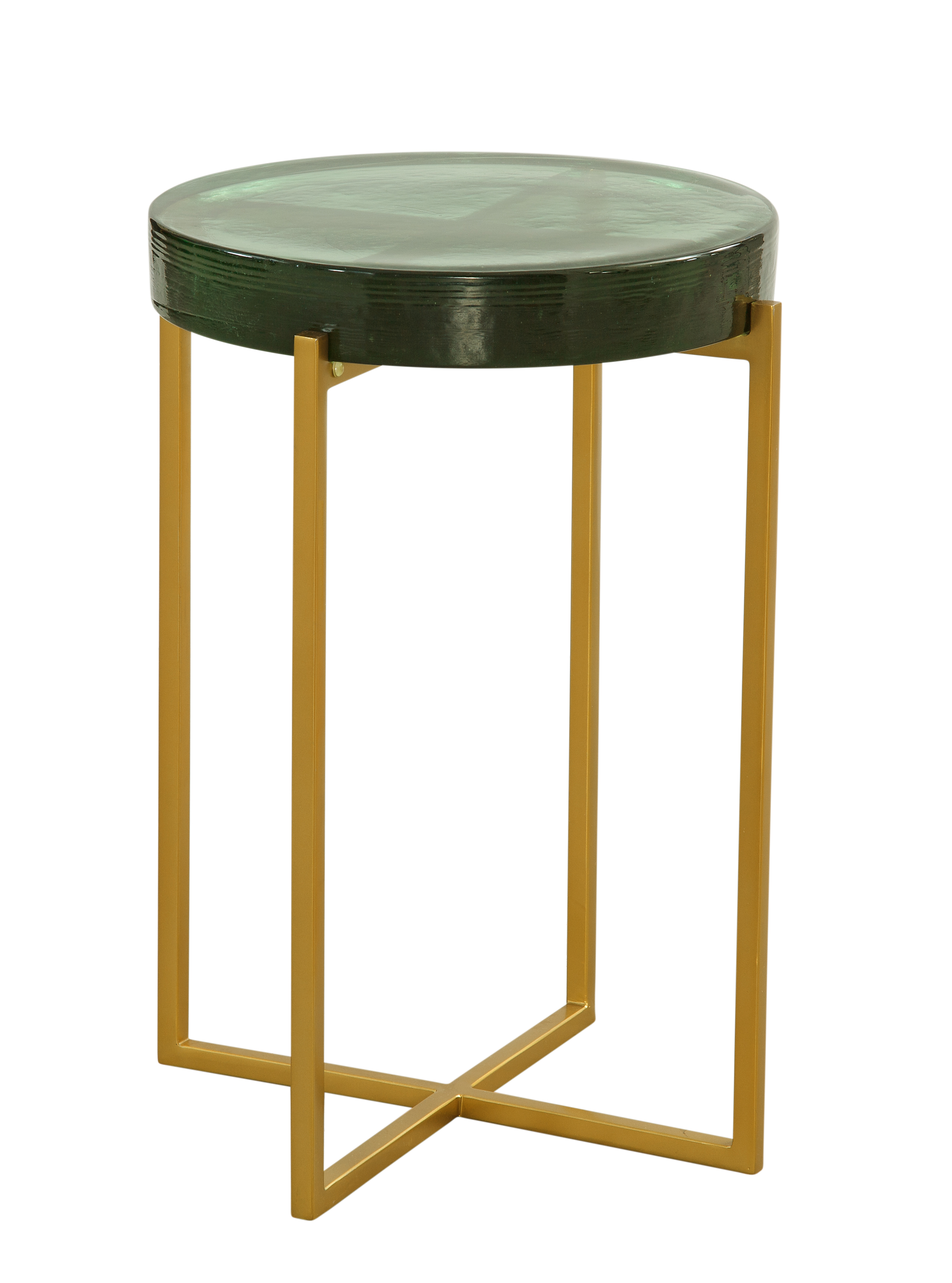 The Marilee Accent Table in green brings a touch of modern elegance with its eye-catching design. The rich green cast glass tabletop offers a subtle pop of color, beautifully contrasting with the sleek, brushed gold geometric base. This contemporary piece effortlessly enhances any room, adding both sophistication and a playful element to your decor.