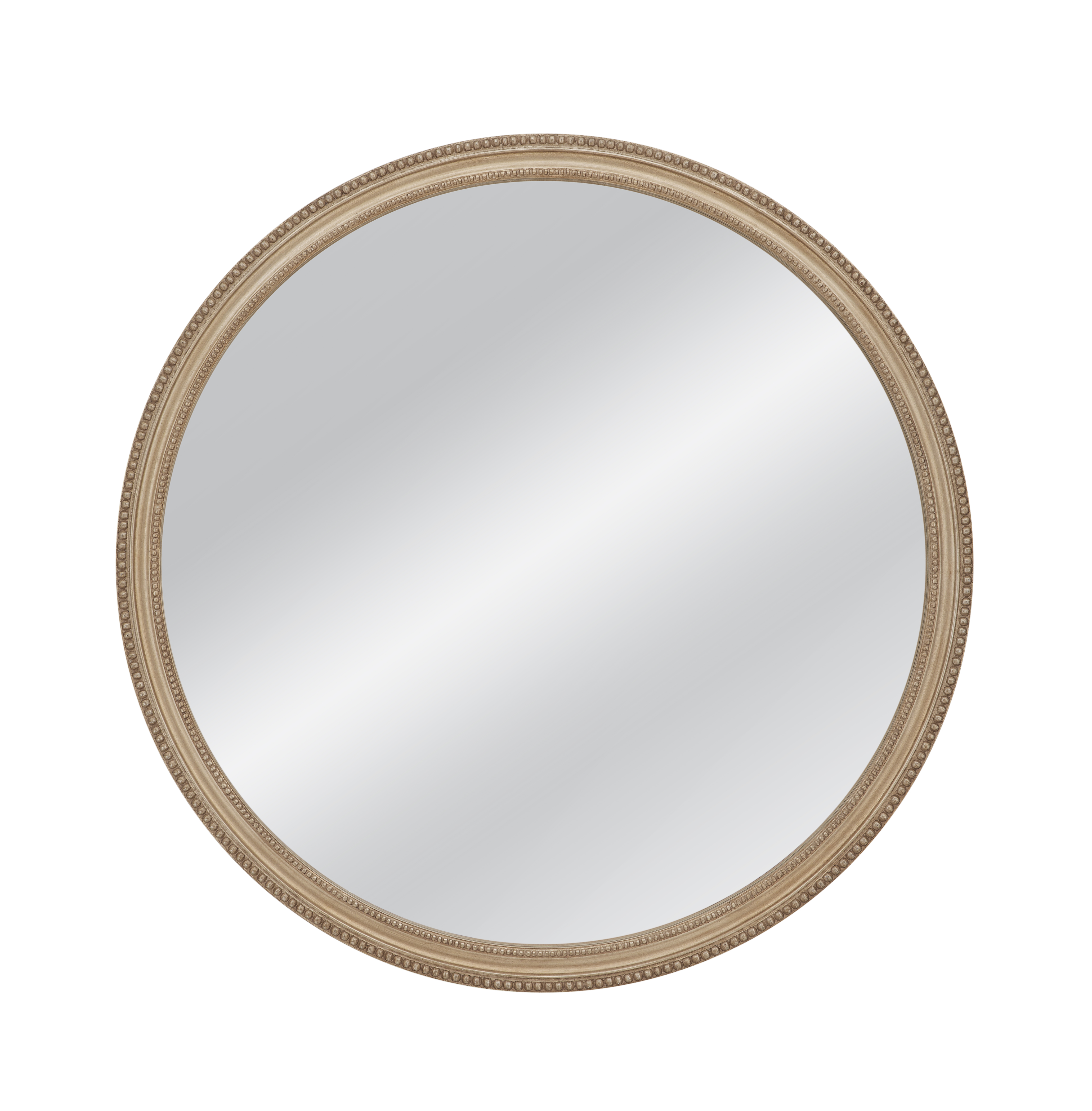 The Gateway Wall Mirror showcases timeless elegance with a traditional round silhouette and a delicately textured frame. Finished in silver with a beaded-like design, it brings a touch of classic sophistication to any room.